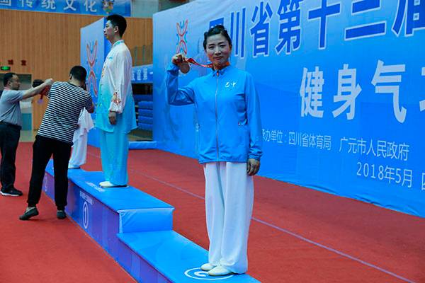 冯晓华演练个人项目:《易筋经》 ,获铜牌