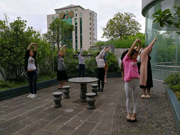 为提高巴中电信公司职工的身体素质和工作效率,在副总经理罗桂琼的指示下,通过工会干事王净(我会秘书处副秘书长)的不懈努力和精心辅导,公司机关定于每天上午10点、下午4点半做工间操30分钟,内容是《保健操》和健身气功《八段锦》,目前该公司上、下午工间操时间已纳入公司机关制度,并常态化坚持下去。