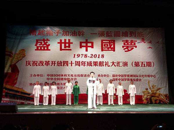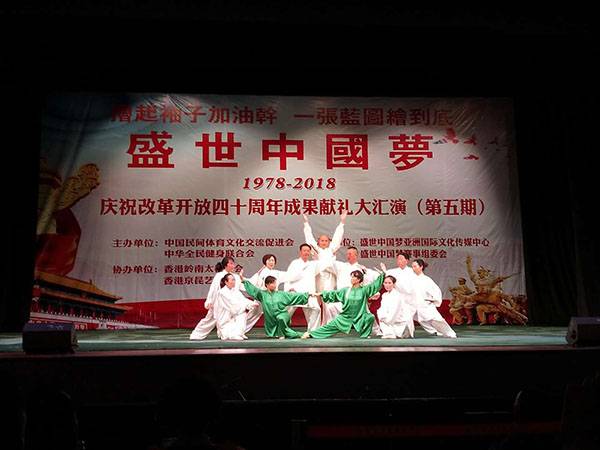 这次盛世中国梦大型表演活动,是由中华全民健身联合会,盛世中国梦亚洲国际文化传媒中心,香港岭南太极总会等机构组织发起,邀请了全国三十二支代表队,在香港大剧院表演。来自全国的几位名流及专家,按照评分要求对每个节目严格评分。评出了特等奖、金、银奖和组织奖各一名。