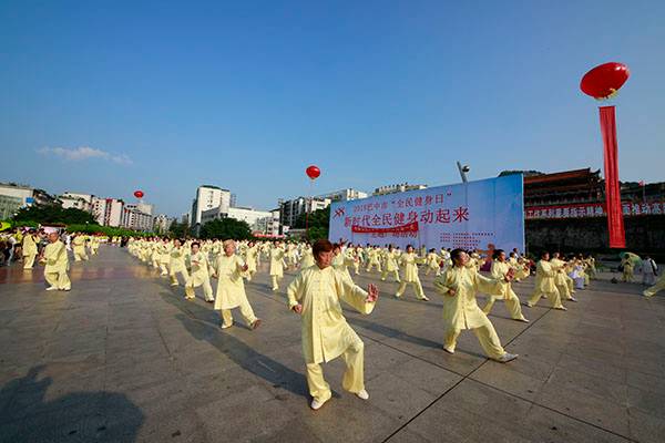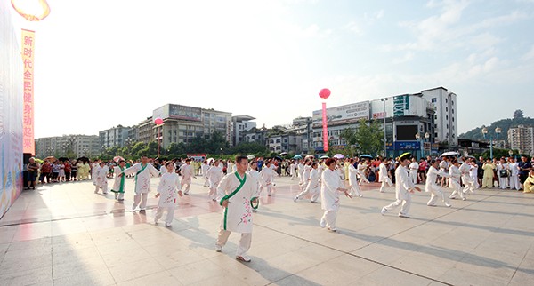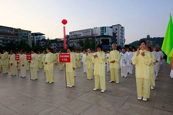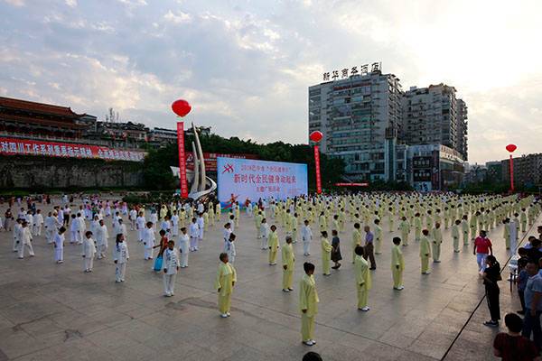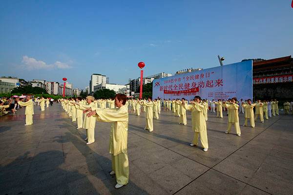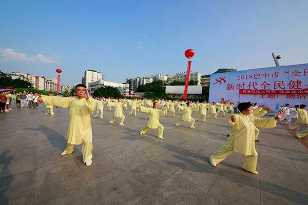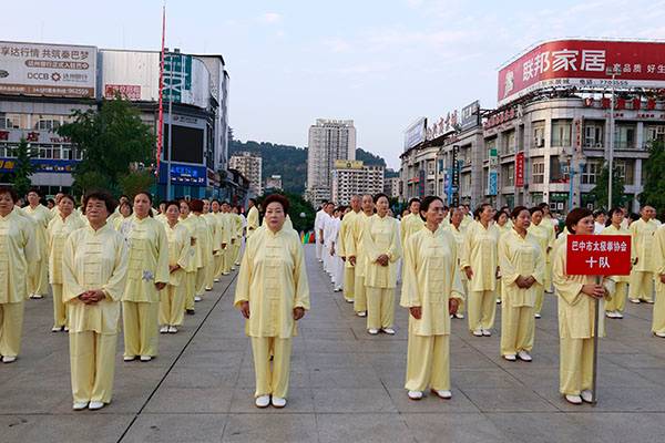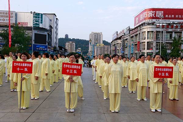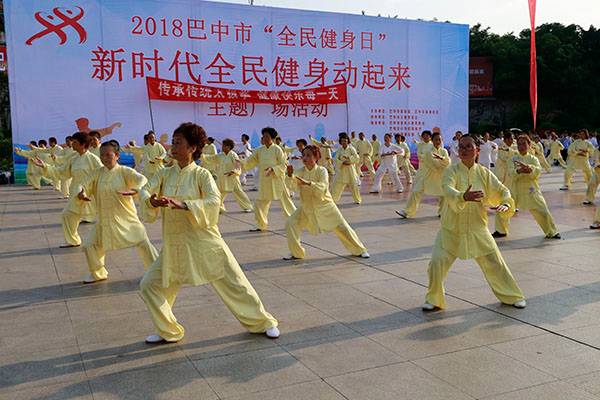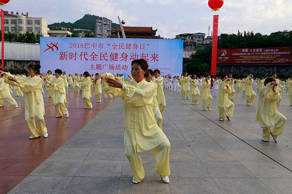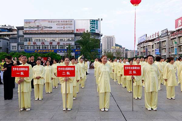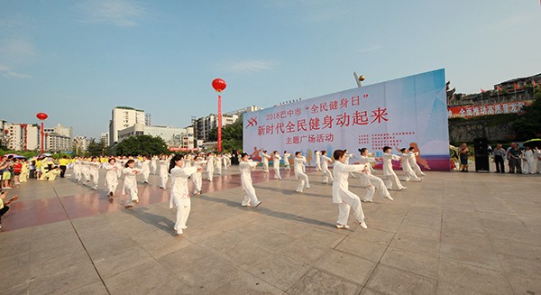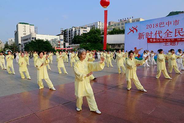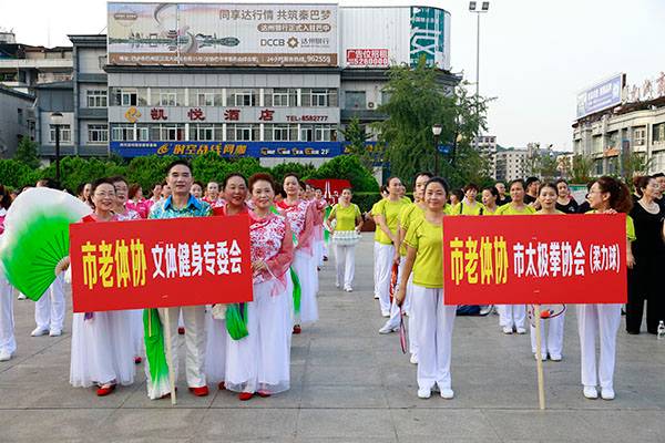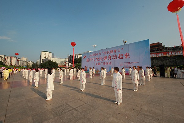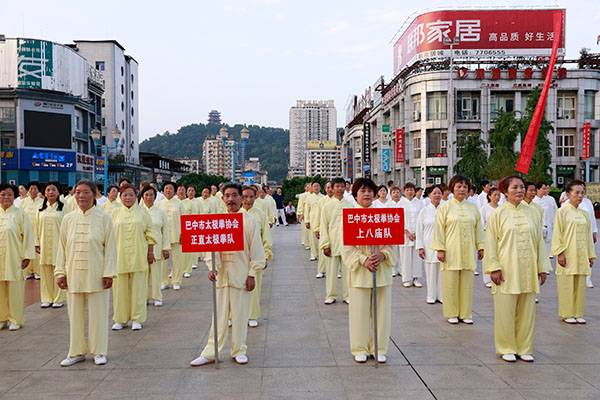 来自市太极拳协会十六个直属队及上八庙、正直太极拳分队和云台养生太极拳队480余人,恩阳区太极拳协会60余人,巴州区户外运动协会的舞蹈队、摄影队、网球队、啦啦队300余人,市老年人体育协会100余人和星光舞蹈俱乐部30余人,共计近千名热爱健身的朋友们齐聚巴人广场,他们将在这里纪念改革开放40周年、将在这里践行习近平总书记关于全民健身工作的重要指示、将在这里庆祝自己的第十个健身节日。