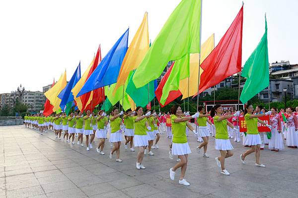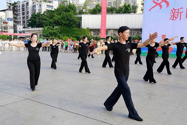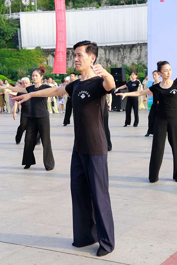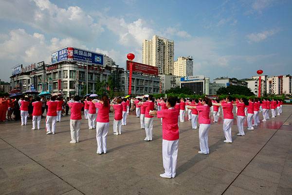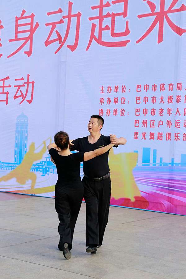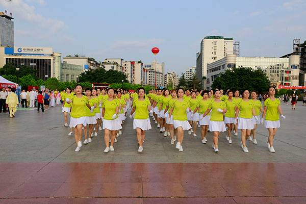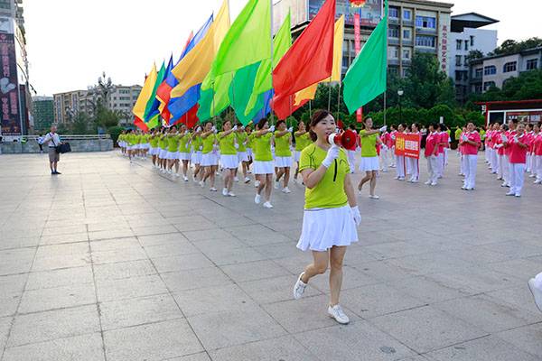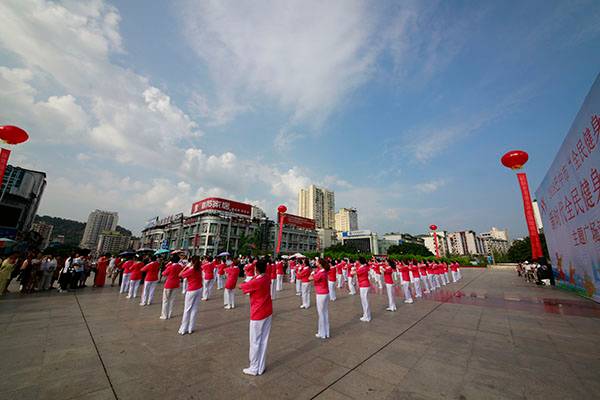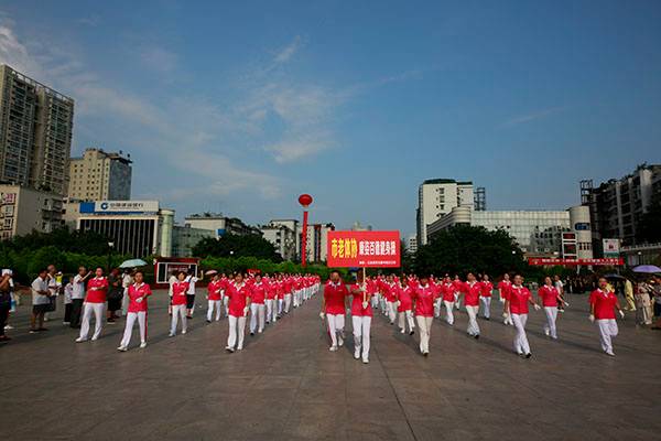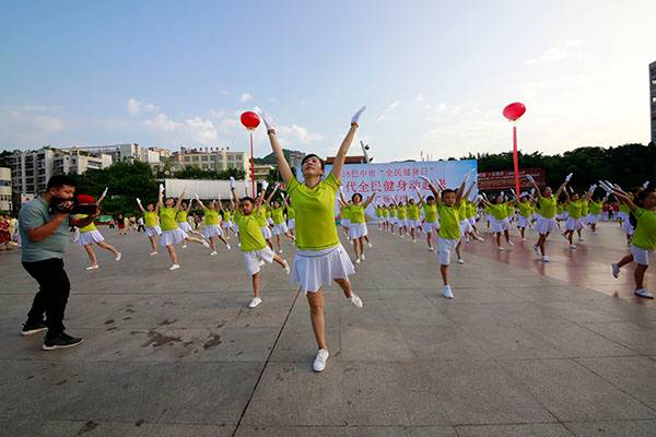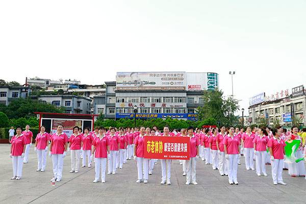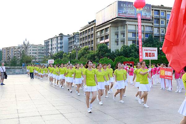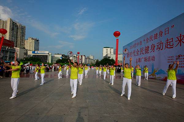 简短的启动仪式后,近千名热爱健身的朋友们,身着五颜六色的表演服,身披朝霞,意气风发,先后分别联动展演了精彩的健身气功八段锦、24式太极拳、第九套广播体操、舞蹈《祖国颂》、国标交谊华尔兹舞蹈、杨式传统二十八式太极拳、广场舞《最炫民族风》、桃花太极拳、太极柔力球、康姿百德健身操等丰富多彩的体育健身节目,巴人广场呈现出一道道靓丽的风景、传递着运动的激情与快乐、舒展着灵动婀娜的身姿,他们以自已不同的方式盛赞新时代美好幸福生活,幸福感、获得感写在他们脸上。围观的市民下意识拿岀手机,记录这美轮美奂的精彩瞬间。近千名体育健身爱好者的精彩展演,折射岀巴中全民健身和群众体育运动方兴未艾,亦即“健康中国建设”的一个缩影。