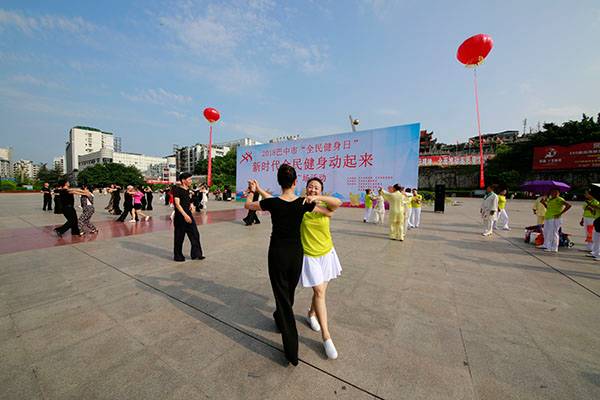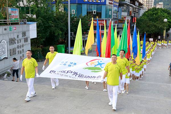 8月4日早上5:30,热爱健身的朋友们身着节日盛装,从四面八方早早来到巴人广场,6:30这里已人声鼎沸、彩旗猎猎,六颗硕大的氢气球标语悬挂主会场四周,主会场正中一块20×7米的主题背景墙,在晨曦中格外醒目,整个巴人广场洋溢着一派浓郁的节日气氛,展现着巴中人民新时代的新生活、新风采。