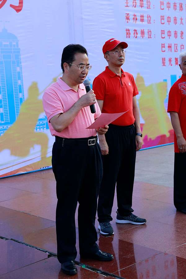 七时正,由市体育局、市体育总会主办,市太极拳协会承办,市老年人体育协会、巴州区户外运动协会、星光舞蹈俱乐部协办的“2018巴中市‘全民健身日’——‘新时代全民健身动起来’主题广场活动”在这里盛大举行。启动仪式由市体育局副局长、市体育总会副会长鲁瑛主持,巴州区户外运动协会会长冯平、市太极拳协会会长刘云太先后致辞,市体育局局长、市体育总会会长赵万国发表了热情洋溢的讲话,最后副市长邱成平宣布:“2018巴中市‘全民健身日’——‘新时代全民健身动起来’主题广场活动”现在开始。