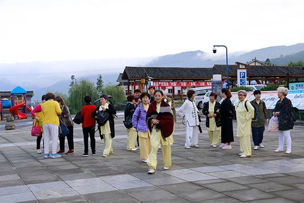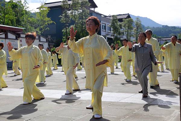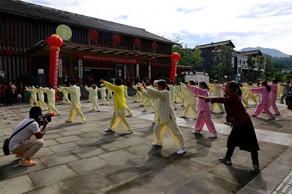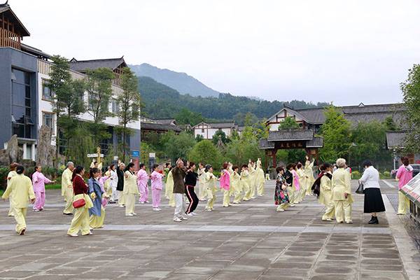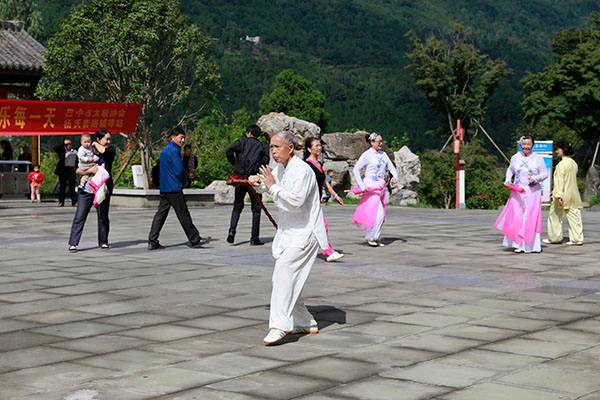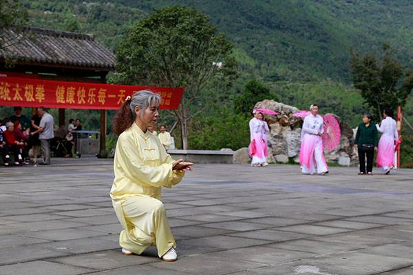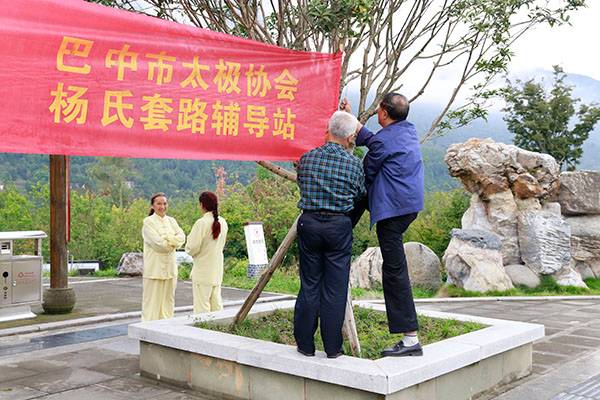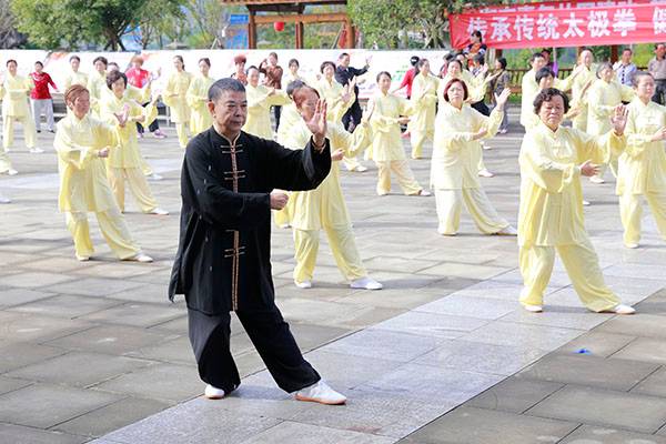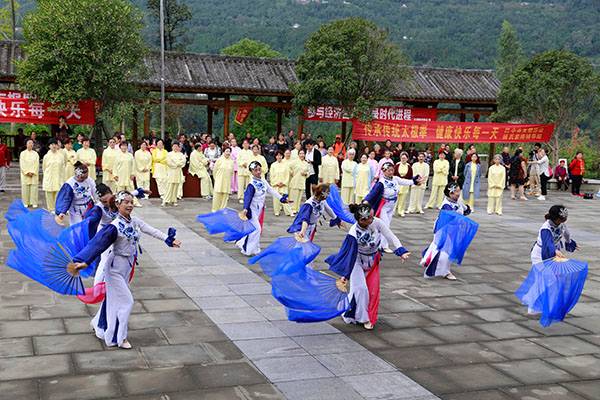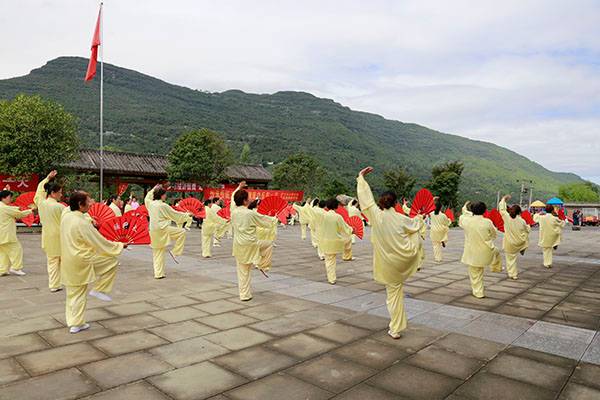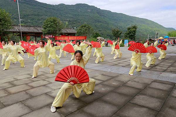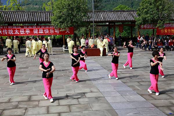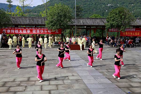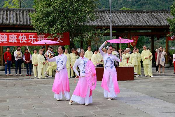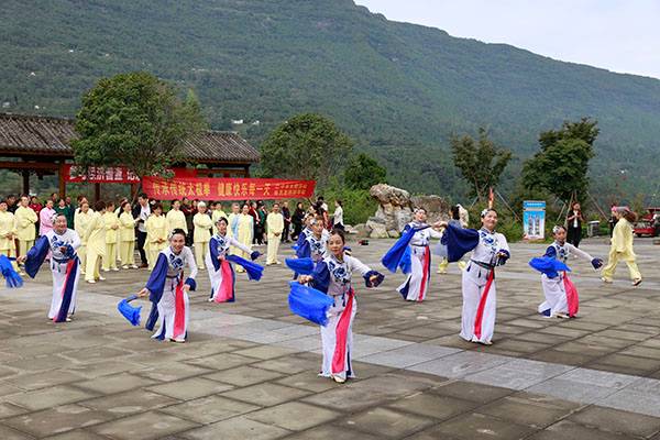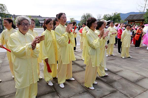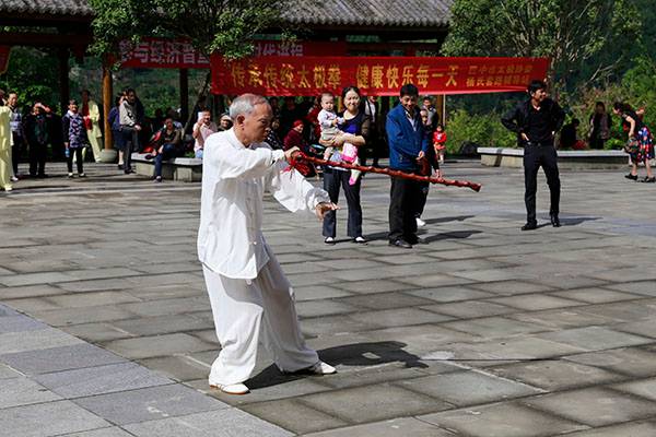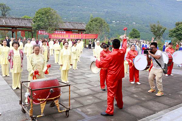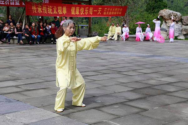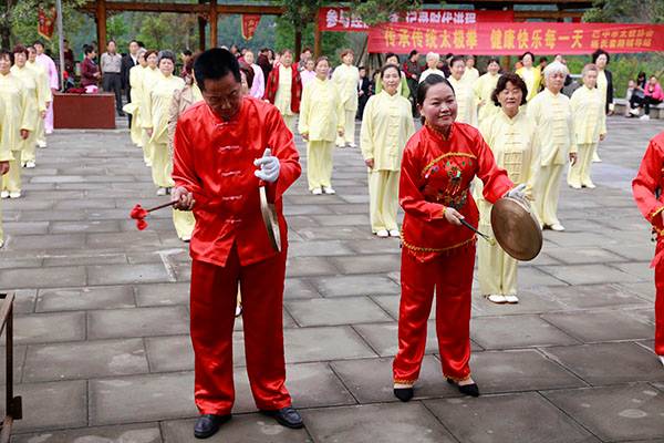 《我们是健康快乐的太极人》乐曲伴着白云台队“奶奶”们英姿飒爽的表演,诠释了太极拳奇特的养生功能,表达了巴中太极人热爱太极的共同心声。