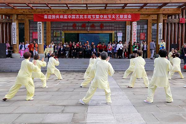 一曲由两地四队的太极人共同表演的“功夫扇”把活动推向了更高潮,也推向了尾声。热烈的掌声后,活动在正直锣鼓队“欢庆锣鼓敲起来”的喜庆声中落下帷幕。我们衷心希望太极之花在正直越开越艳,希望长滩河村明年又是一个丰收年!
