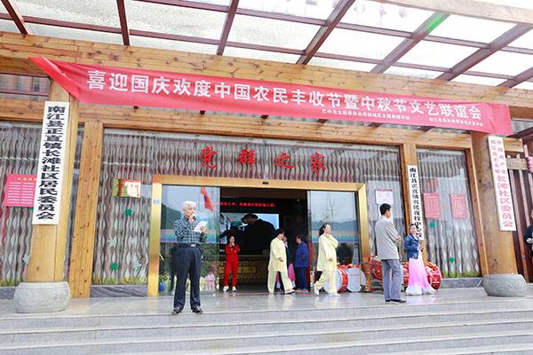 九月二十一日早上七点,载着我直属会九队、白云台队、十二队队员的十几辆车驶进了七彩长滩旅游景点。哇!这里张灯结彩,充满了节日的气氛,人们穿着节日的盛装,五彩缤纷的服饰和“七彩长滩”的景色交相辉映。上午九时我会传统杨式太极拳辅导站和南江县老体协正直分会将在这里举行“喜迎国庆、欢度中国农民丰收节暨中秋节文艺联谊活动”。