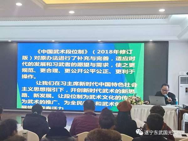 国家体育总局武术研究院专家委员会专家、中国武术九段、国家级教练陈顺安主讲《中国武术段位制考评员培训讲义》。