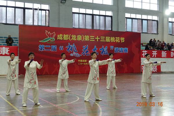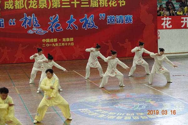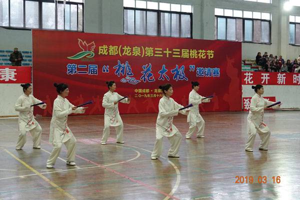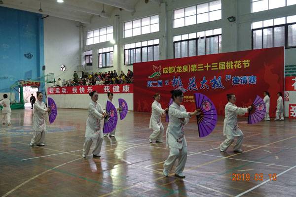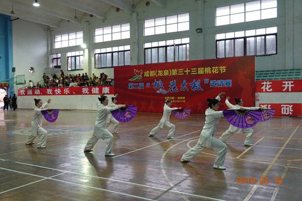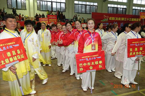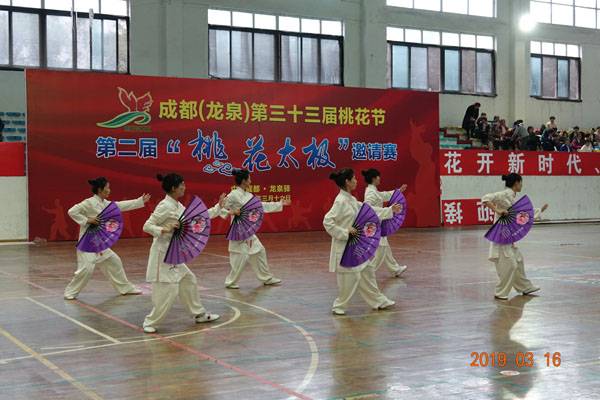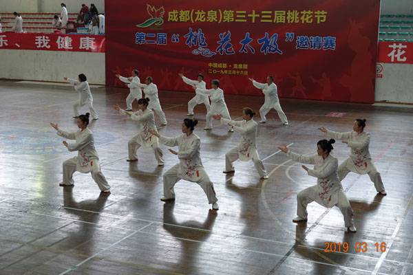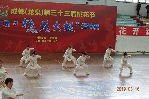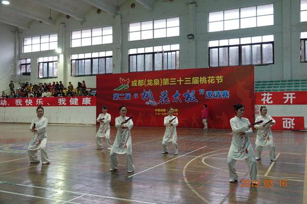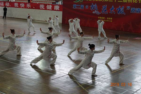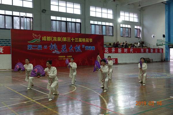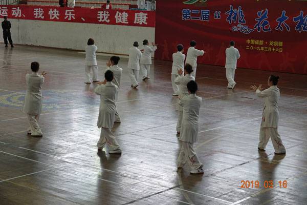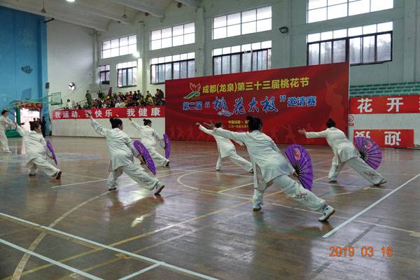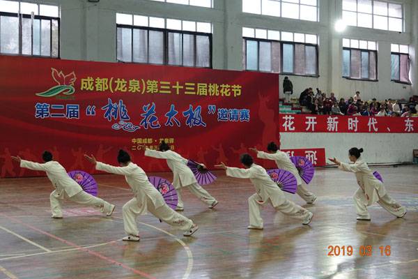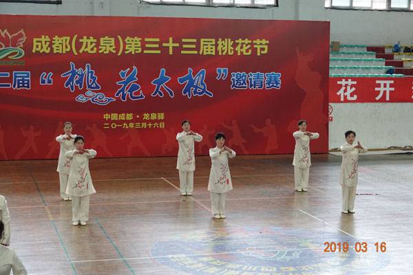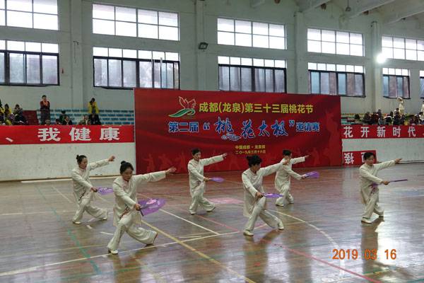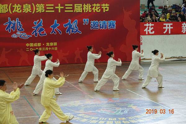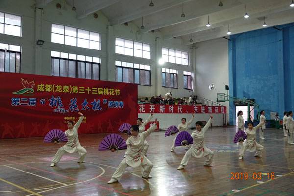 3月16日9时,“2019年成都(龙泉)第三十三届桃花节第二届桃花太极邀请赛”在龙泉驿区体育中心拉开帷幕。来自四川西昌、巴中、万源、遂宁、江油、绵阳、夹江、泸州、三台、蓬溪、简阳、成都天府新区、青羊区、金牛区、金堂县、青白江区、龙泉驿等地的90支队伍,700余名桃花太极爱好者参加了比赛。桃花太极巴中培训基地(桃花太极辅导站)组建两支代表队、协会组建一支代表队参赛,经过激烈角逐,桃花太极巴中培训基地二队夺得成年组桃花太极拳一路一等奖,桃花太极巴中培训基地一队、协会队分别夺得成年组桃花太极拳二路一等奖;桃花太极巴中培训基地一队、二队、协会队分别夺得成年组桃花太极扇一等奖。