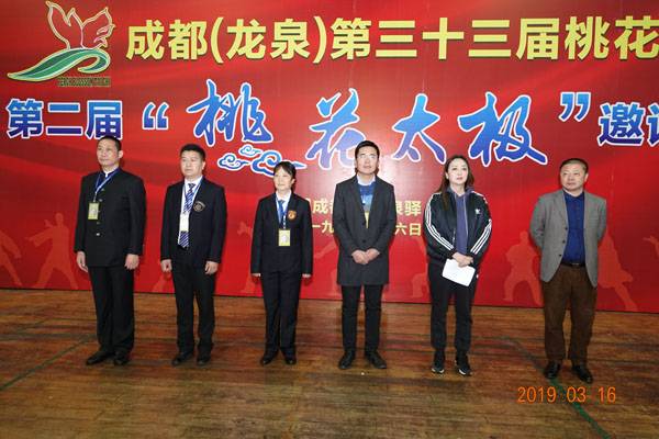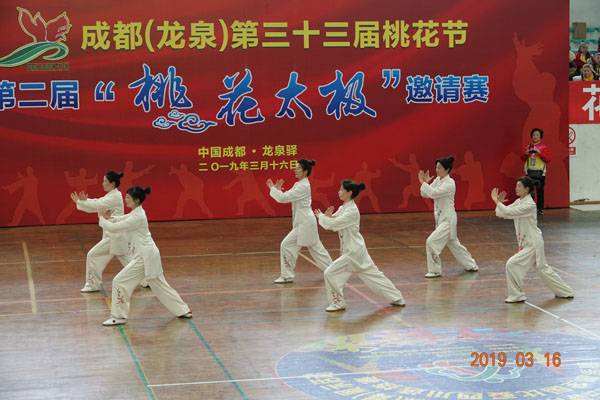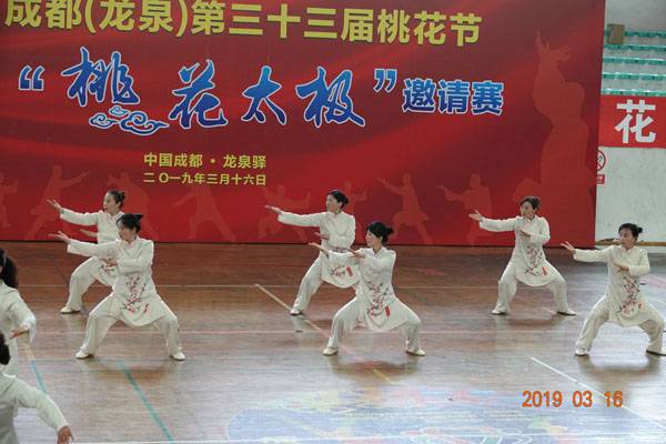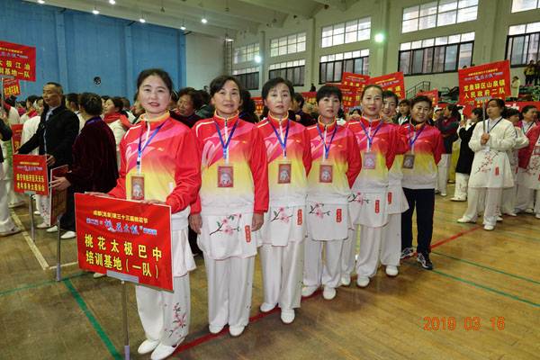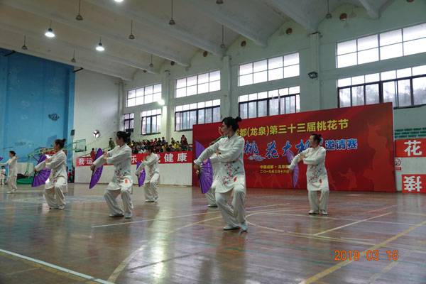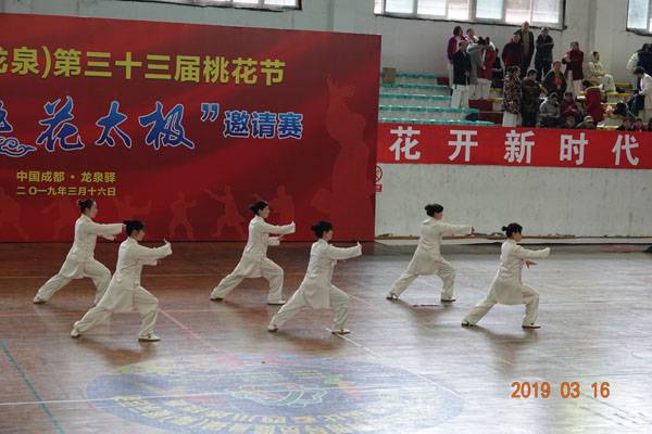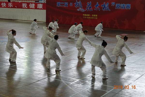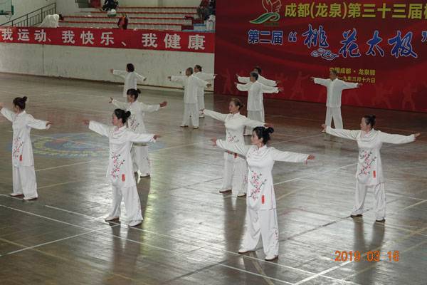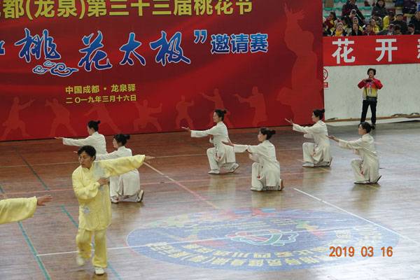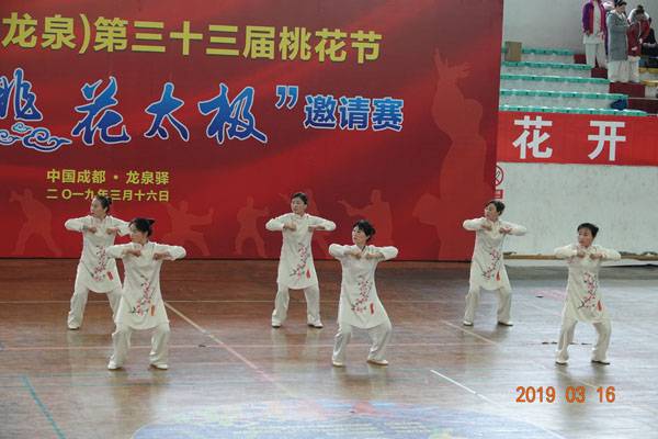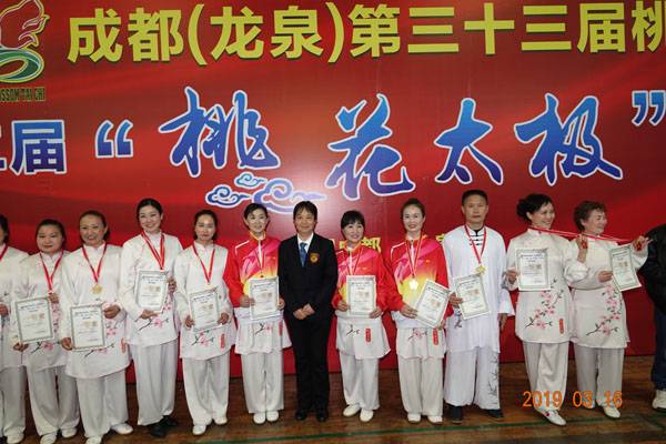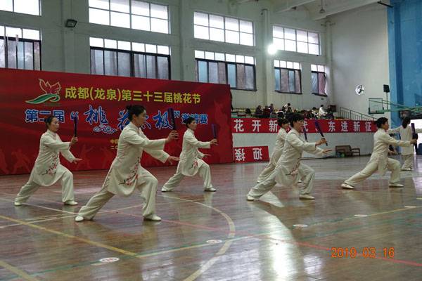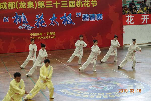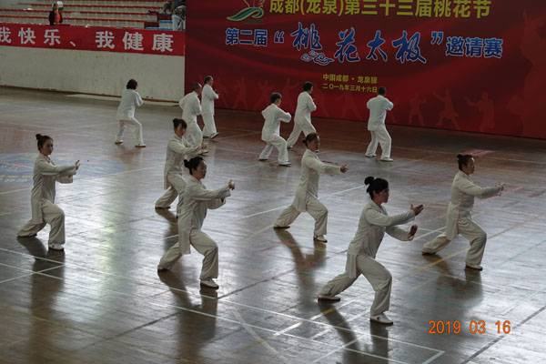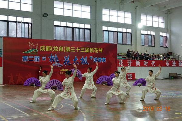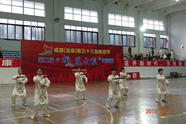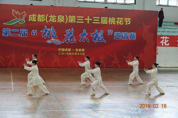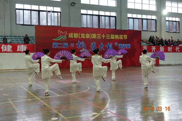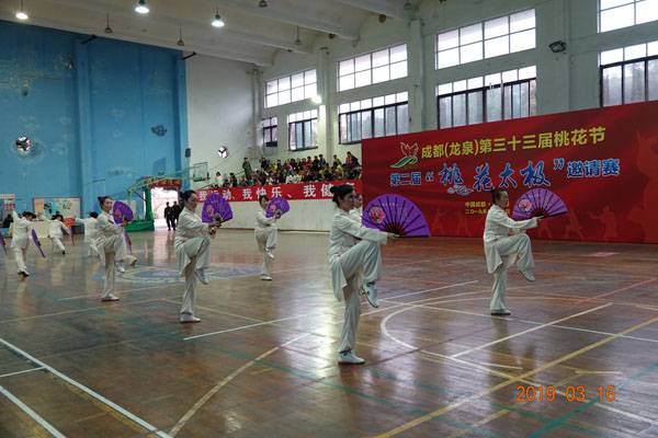 3月16日9时,“2019年成都(龙泉)第三十三届桃花节第二届桃花太极邀请赛”在龙泉驿区体育中心拉开帷幕。来自四川西昌、巴中、万源、遂宁、江油、绵阳、夹江、泸州、三台、蓬溪、简阳、成都天府新区、青羊区、金牛区、金堂县、青白江区、龙泉驿等地的90支队伍,700余名桃花太极爱好者参加了比赛。桃花太极巴中培训基地(桃花太极辅导站)组建两支代表队、协会组建一支代表队参赛,经过激烈角逐,桃花太极巴中培训基地二队夺得成年组桃花太极拳一路一等奖,桃花太极巴中培训基地一队、协会队分别夺得成年组桃花太极拳二路一等奖;桃花太极巴中培训基地一队、二队、协会队分别夺得成年组桃花太极扇一等奖。