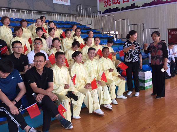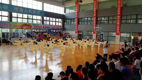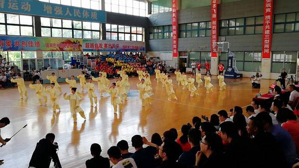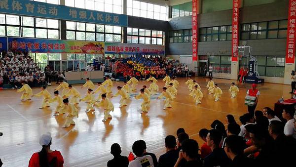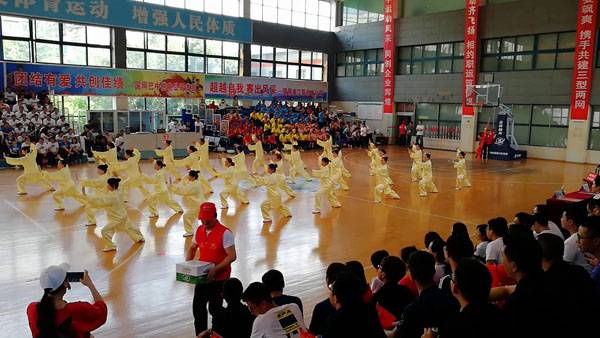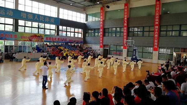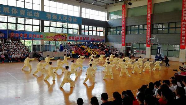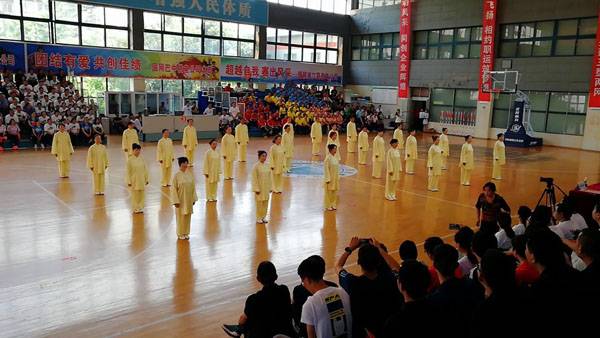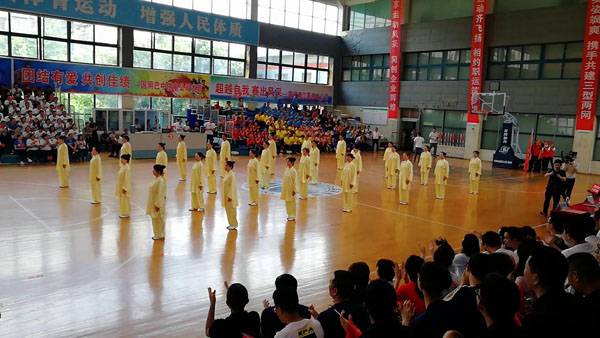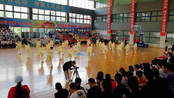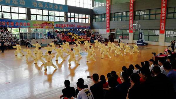 30位身着黄色太极服的帅哥靓女们,在开幕式上集体表演了二十四式简化太极拳。伴随着优美的旋律,他们演绎了太极的诗情画意、太极的文化传承、太极的神韵之美,令观众们陶醉其中。博得了现场观众的热烈掌声和欢呼声。