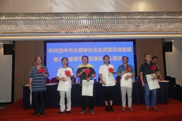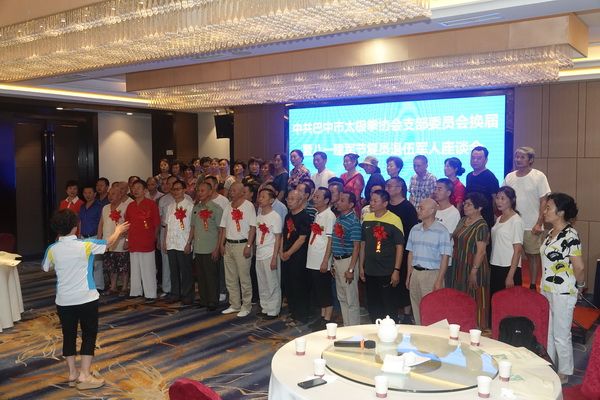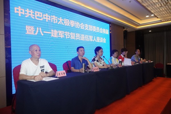 7月31日下午,中共巴中市太极拳协会党支部在天越岷山饭店六楼梁州厅举行党支部换届暨“八一”建军节复退军人座谈会。协会部分副会长、新一届党支部成员、协会部分党员、复退军人会员、直属队队长等63人参加了座谈会。