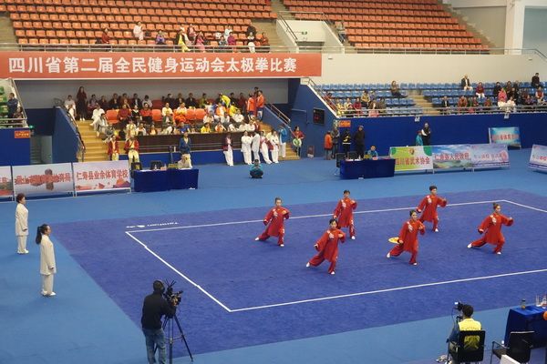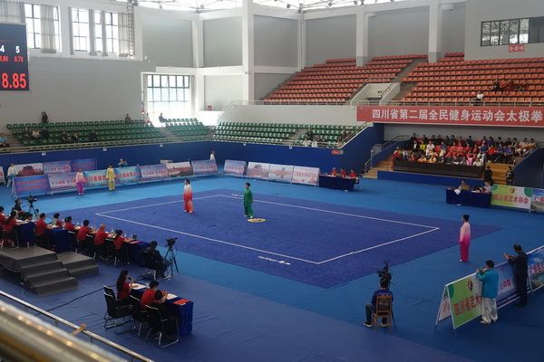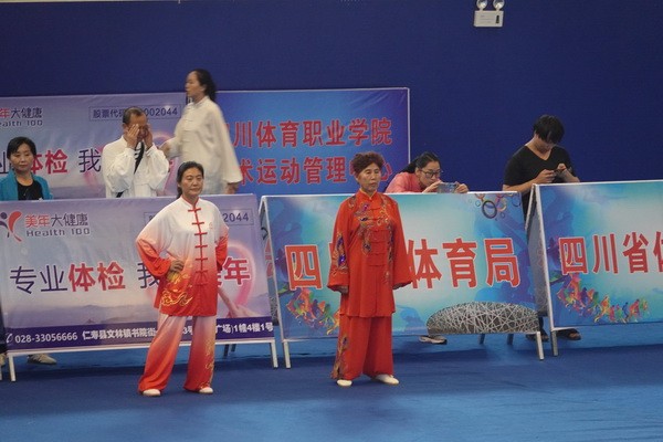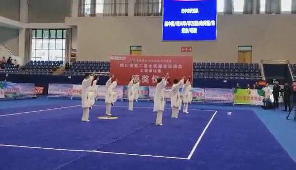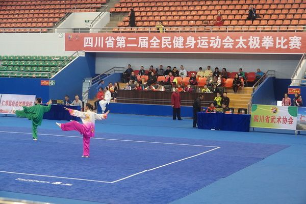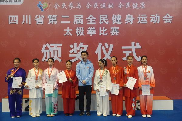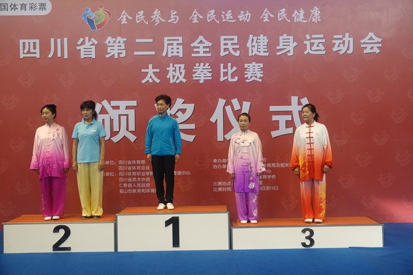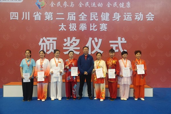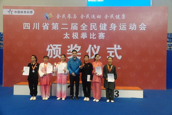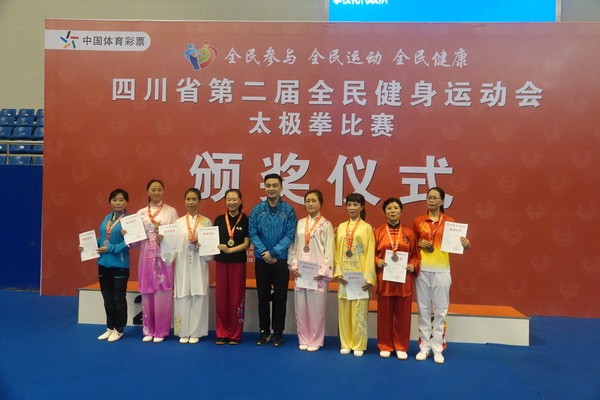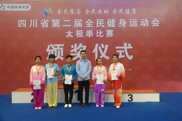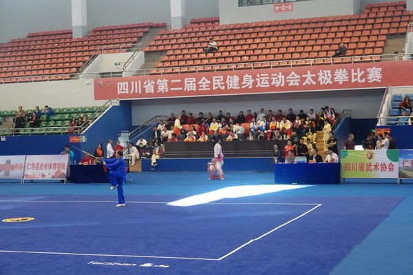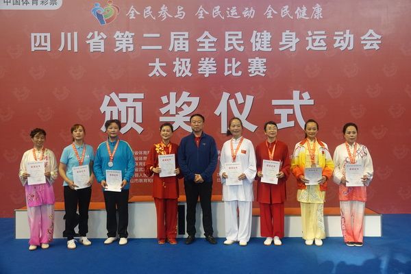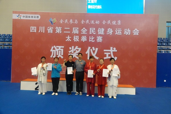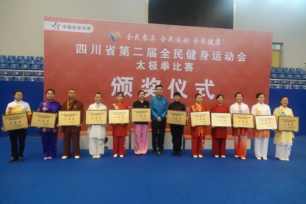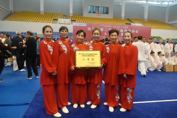 10月13日,四川省第二届全民健身运动会太极拳比赛在眉山市仁寿县体育馆落幕。来自全省17个市(州)代表团共计300余人参加本届全民健身运动会。我会受市教育和体育局委托,组队代表巴中市参赛的26名运动员,分别参加了个人项目的男子、女子甲、乙组的陈、杨、吴、武、孙、42式太极拳(剑)国家规定竞赛套路及男、女集体项目的全部单项比赛,经过三天的顽强拚搏,荣获个人项目一等奖1个、二等奖8个、三等奖14个、优胜奖2个,荣获集体项目二等奖1个、优胜奖1个,3人荣获体育道德风尚奖。本次赛事由副会长李碧芳担任领队(兼运动员),副会长兼秘书长郝玉玲担任教练,参加本次运动会的正副会长共九人。