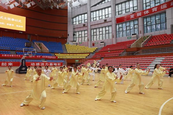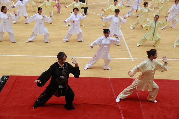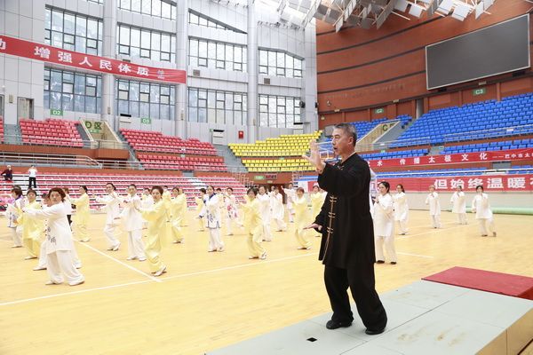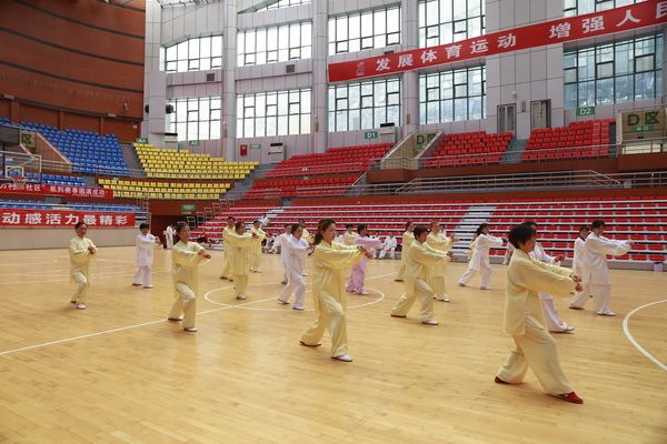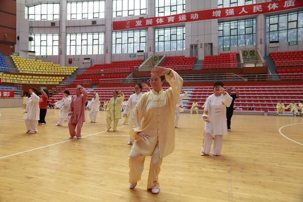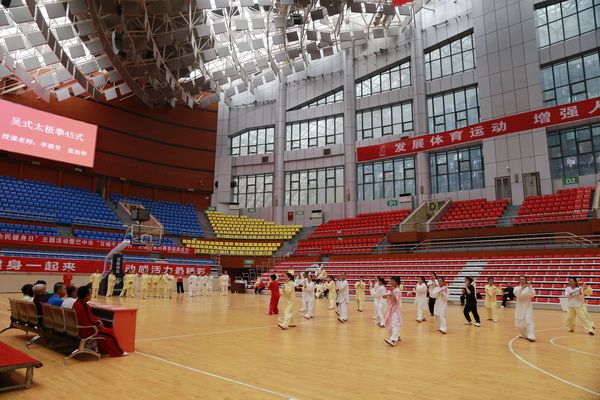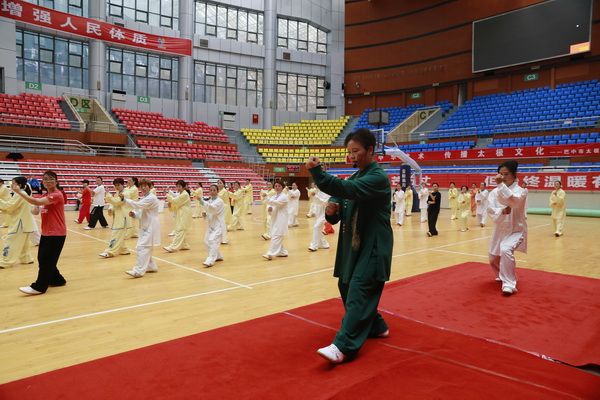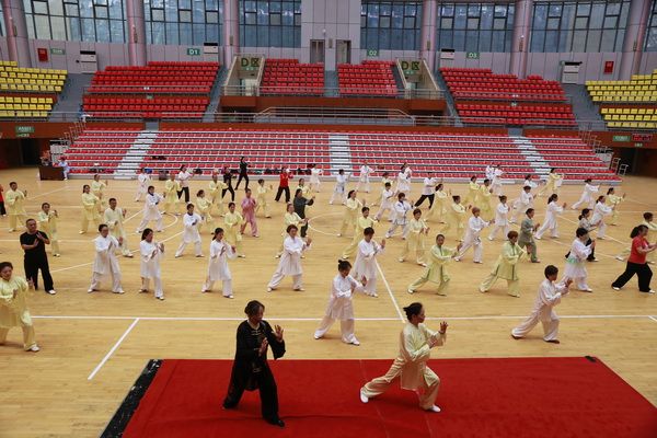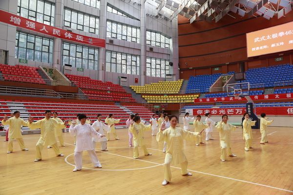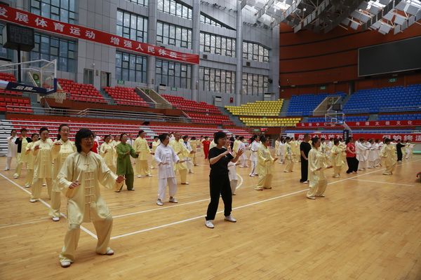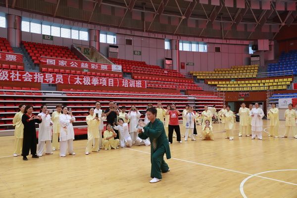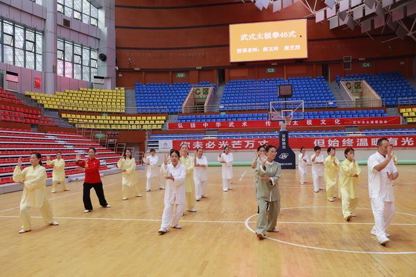 9月28日中国武术六段、武术套路国家一级裁判、四川省一级社会体育指导员、四川省传统武术套路教练、副会长(兼秘书长)郝玉玲及中国武术六段庞芝烈老师在市体育馆对《武式太极拳46式》竞赛套路进行了八个学时的分解教学,培训结束后进行了分组考试。