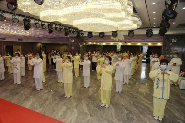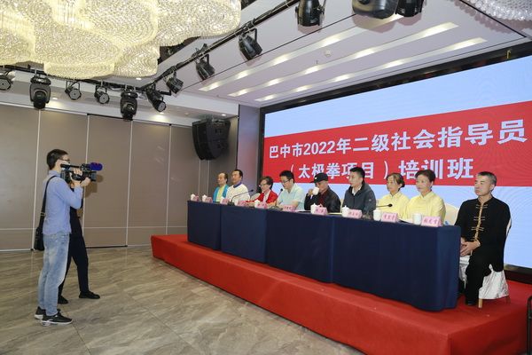巴中市2022年二级社会体育指导员(太极拳项目)培训班于9月26日在巴中天越岷山饭店七楼九州厅举行开班仪式,来自全市三县三区及巴州城区八个办事处所辖社区太极拳指导站、我会直属队的会员及志愿热心从事社会体育指导工作的106名太极拳爱好者参训,我会常务副会长饶华主持开班仪式。市教育和体育局群体科负责人赵轩、群体科干部米易出席。群体科负责人赵轩、会长刘云太在开班仪式上分别作了热情洋溢的讲话,副会长郝玉玲、李碧芳、苟毅、朱荣宗、苟兴华、桃花太极辅导站站长张龙吉在主席台就座。