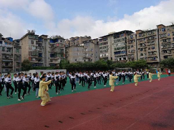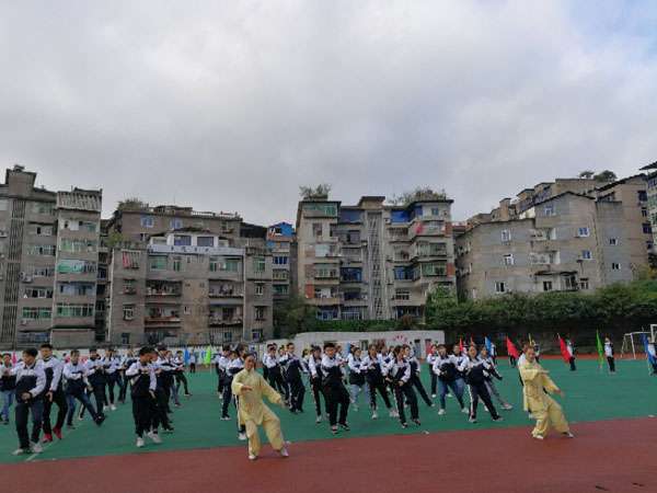 4月11日上午,巴中市第二中学举行第五届教职工篮球运动会开幕式。我会直属二队太极拳骨干队员带领所教的初中两个班一百一十多名学生,在开幕式上集体表演了八式太极拳,受到区教体局领导和学校师生的好评。