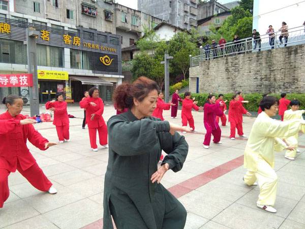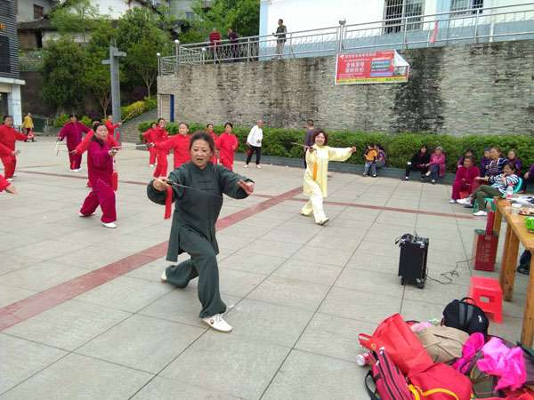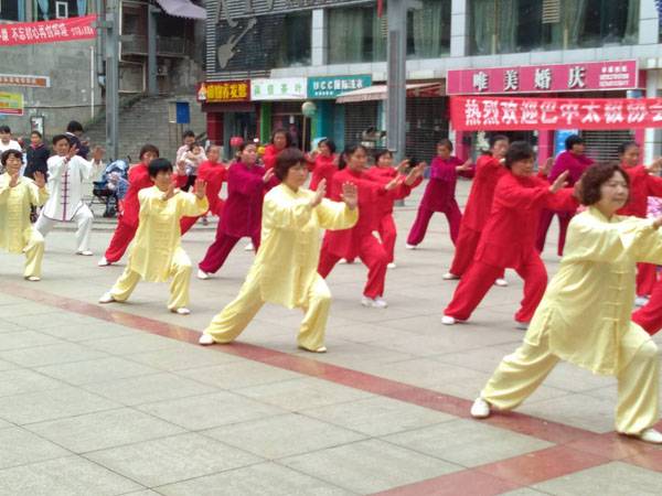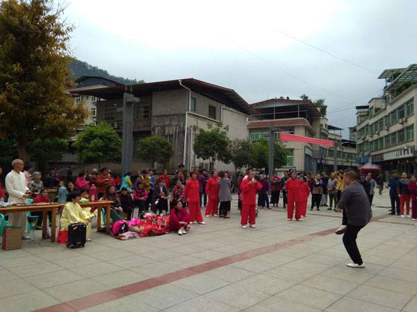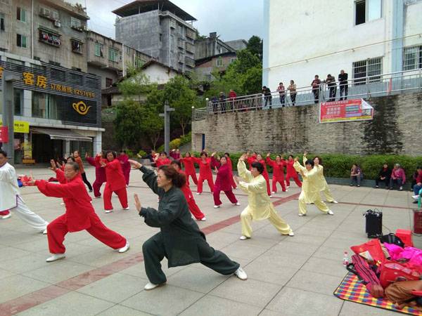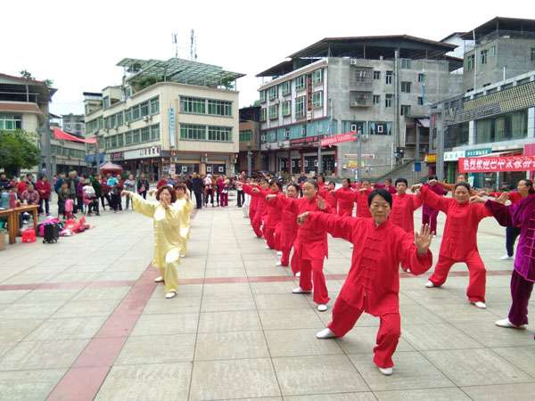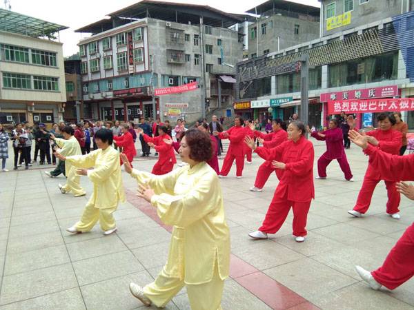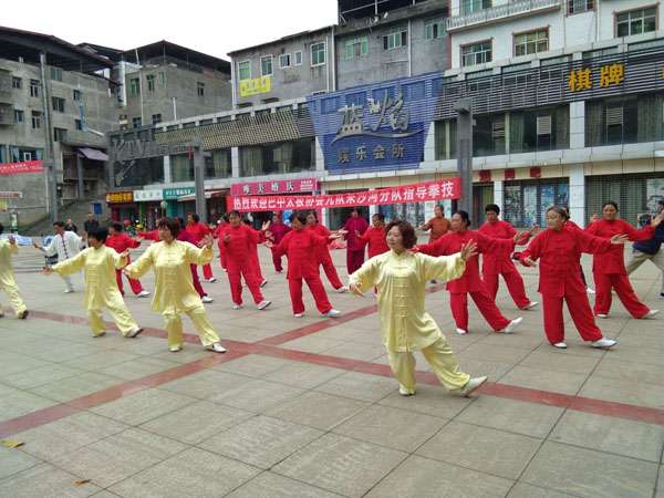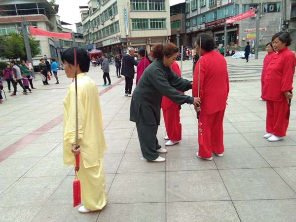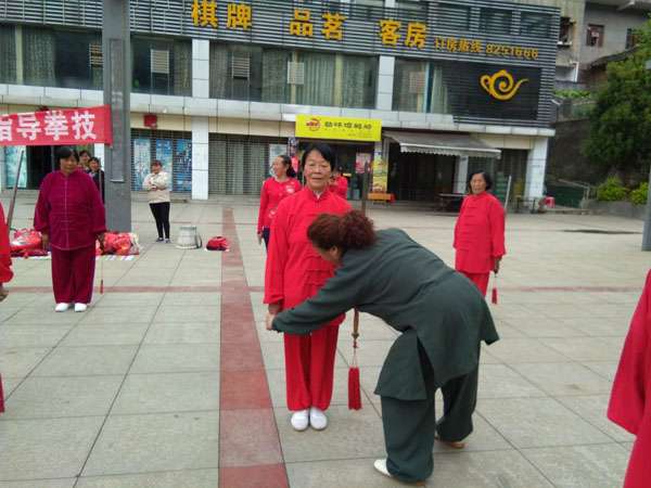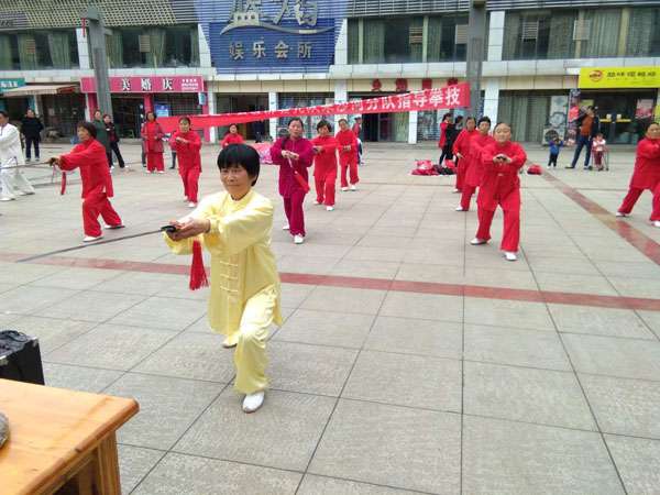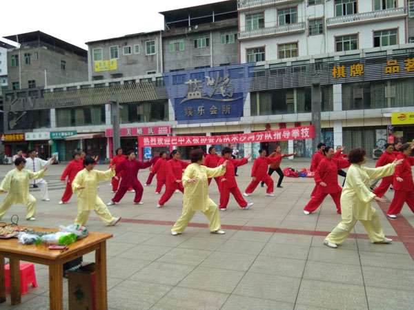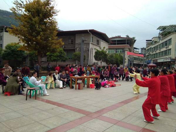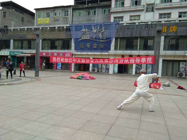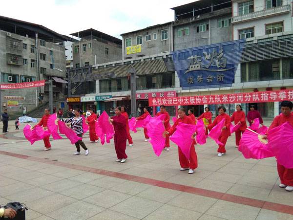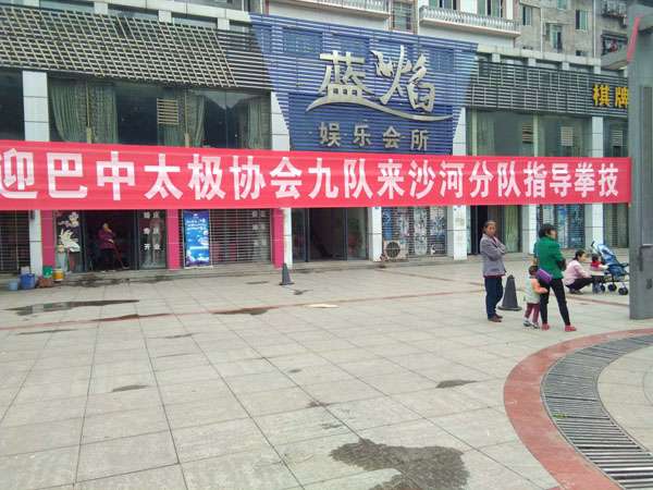 下午,天晴了。两点半钟来到广场,“热烈欢迎巴中市太极协会直属九队来沙河分队指导拳技”的大幅标语格外醒目。吸引了许多观众从四面八方纷纷赶来观摩学习。