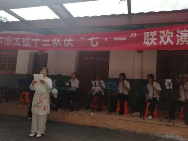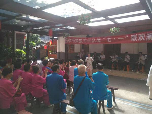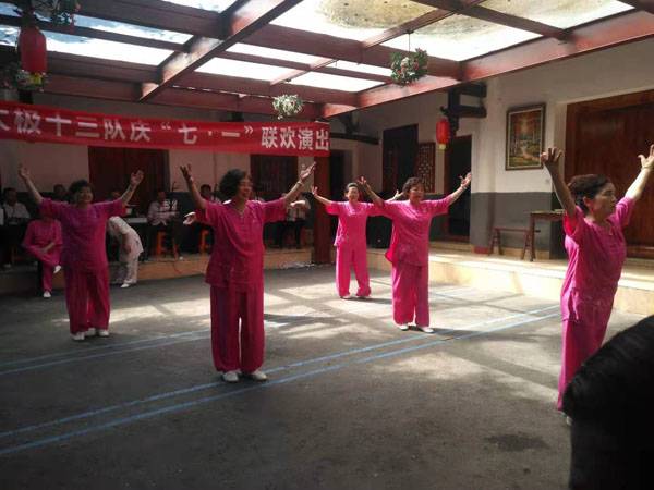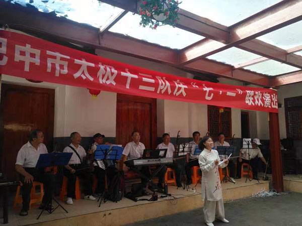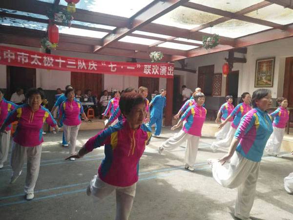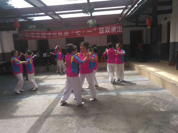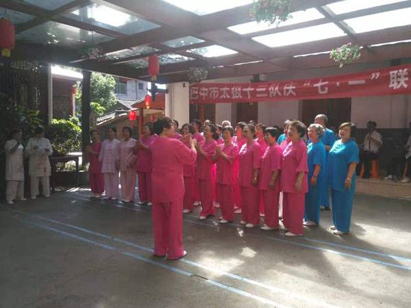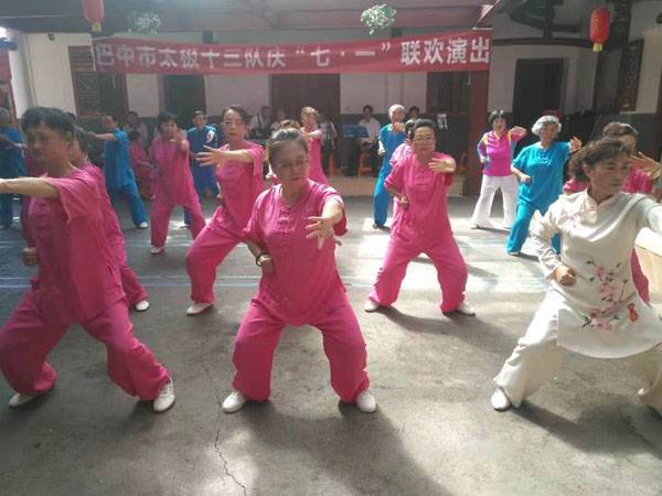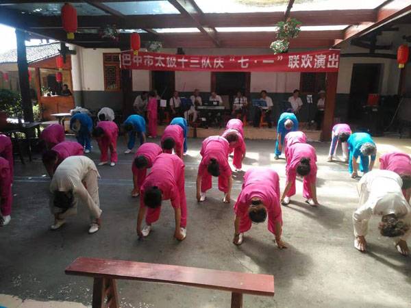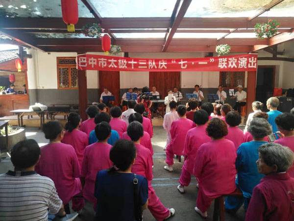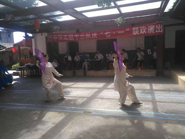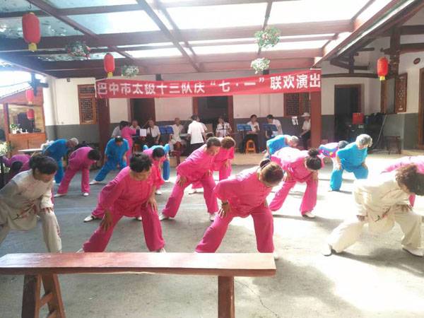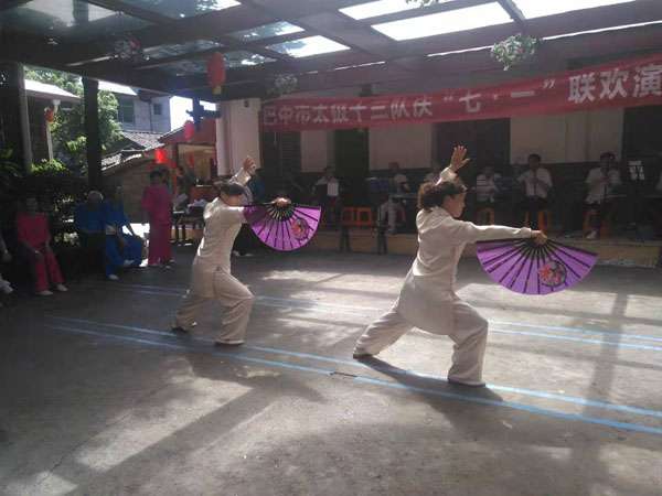 会员们载歌载舞,合唱了《没有共产党就没有新中国》、《社会主义好》、器乐合奏了《唱支山歌给党听》、表演了歌伴舞《我们的生活充满阳光》等文艺节目,并展演了24式太极拳、八法五步、健身气功《八段锦》、中华通络操、桃花太极扇、42式太极剑、杨式28式太极拳等十多个节目,用他们的方式表达拥护党的领导、不忘党恩、感恩社会的心愿。巴州区电视台作了宣传报道。