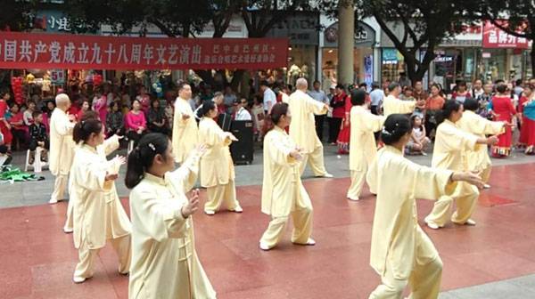 十八队的会员演练了八式太极拳,会员们认真专注的表演,获得了观众朋友的一致好评和热烈的掌声,展示了十八队全体会员的风采,传播了正能量。