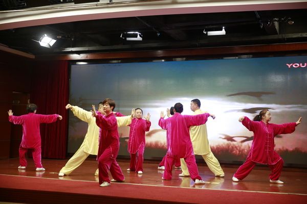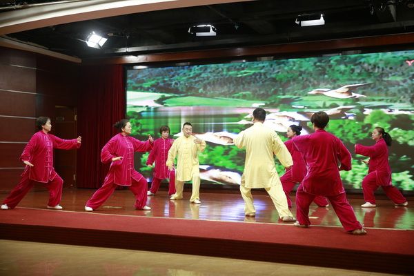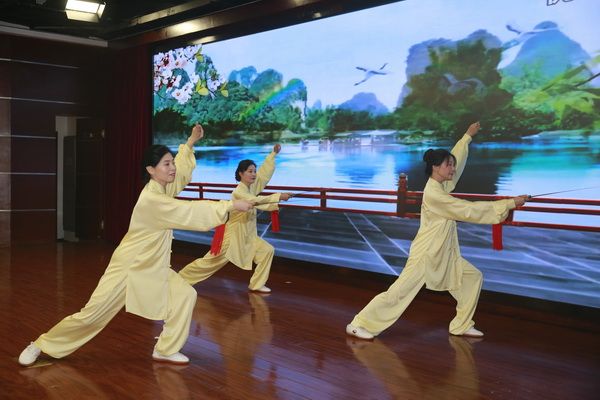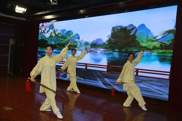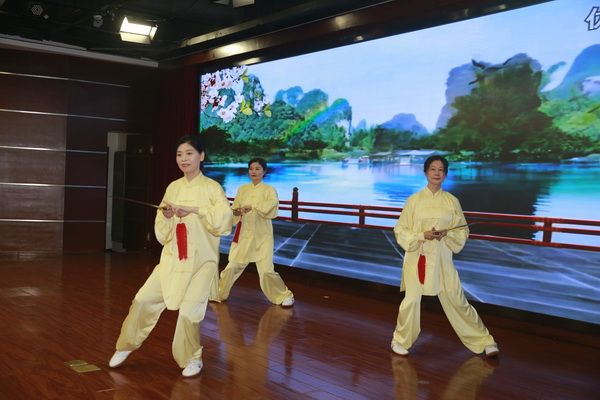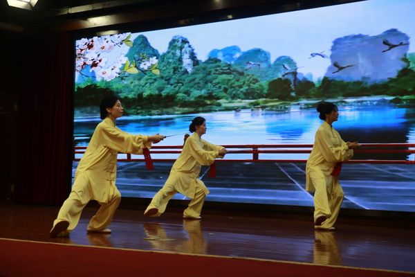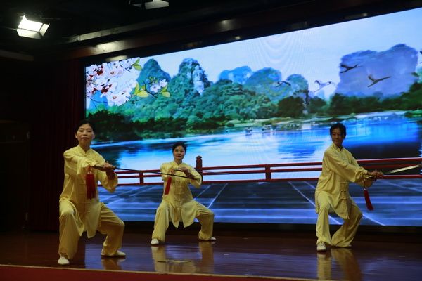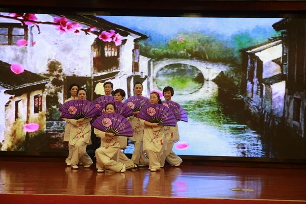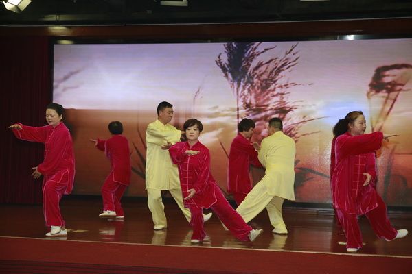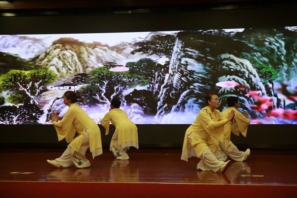 随后,新、老会员以太极为情感互通的桥梁,先后演练了太极拳、剑、扇、健身气功等,并穿插了舞蹈、旗袍秀、葫芦丝独奏、古筝齐奏、独唱、表演唱等节目,充分展示了我会直属五队充满活力、多才多艺、和谐团结的团队精神。