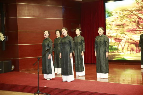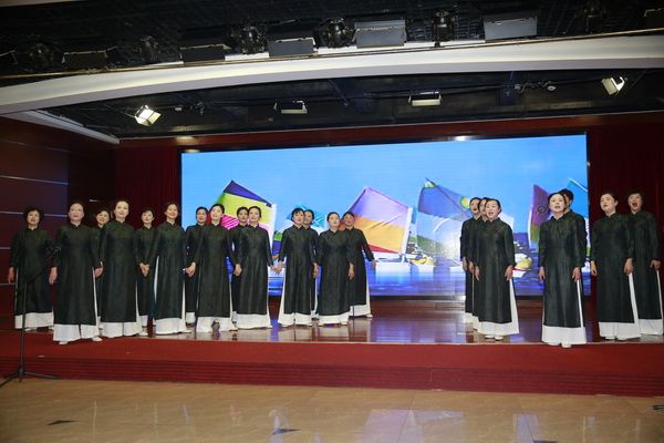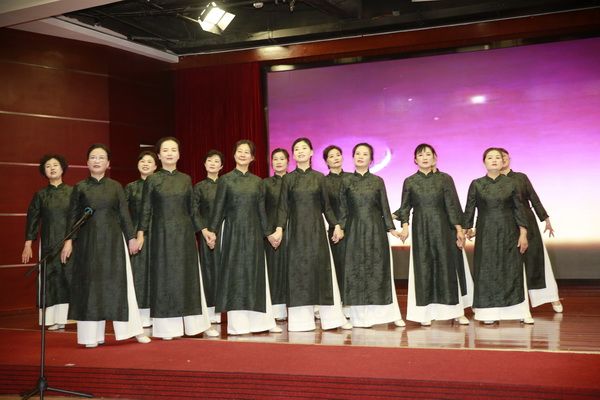 在我会常务副会长饶华女士的指挥下,全体会员热情洋溢地演唱了《唱支山歌给党听》,表达大家的爱党爱国之情。