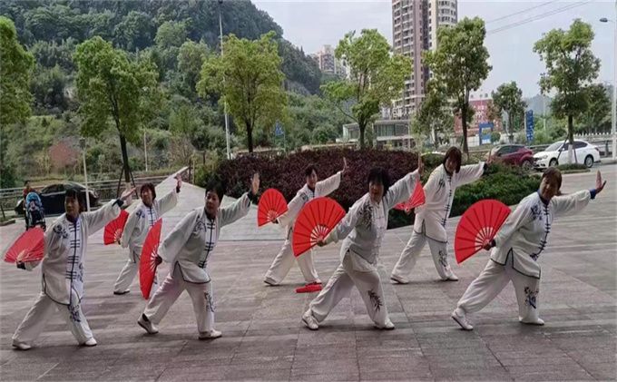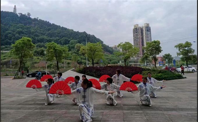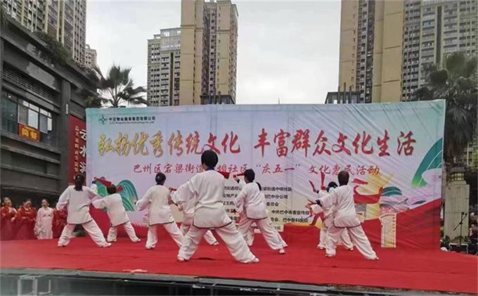 2023年5.1劳动节前夕,巴州区宕梁街道中坝社区在中交王府景太阳广场开展了“庆五一”文化惠民活动。巴中市太极拳协会直属二十一队受邀参加了此次活动,表演了杨式太极扇73式。