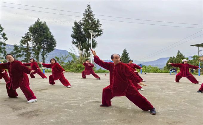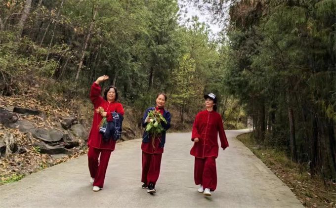 山间原野寻春迹,三月踏青正当时。2024年3月30日阳光灿烂春意盎然,太极三队一行二十多人在队委会的组织下一路欢歌奔赴枣林山庄。苟兴华老师一招一式辅导集体习练85式太极拳,大家认真学习,相互切磋。队员们练拳舞剑,唱歌跳舞,开展各种文娱武术活动,会员之家气氛浓厚。到大自然中练拳,品农家家常饭菜,青山含黛,绿水欢歌,花红柳绿,美不胜收。